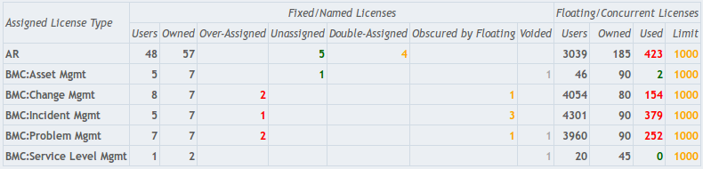 This part of the utility will point out license assignment inconsistencies between what you see and what BMC audits.